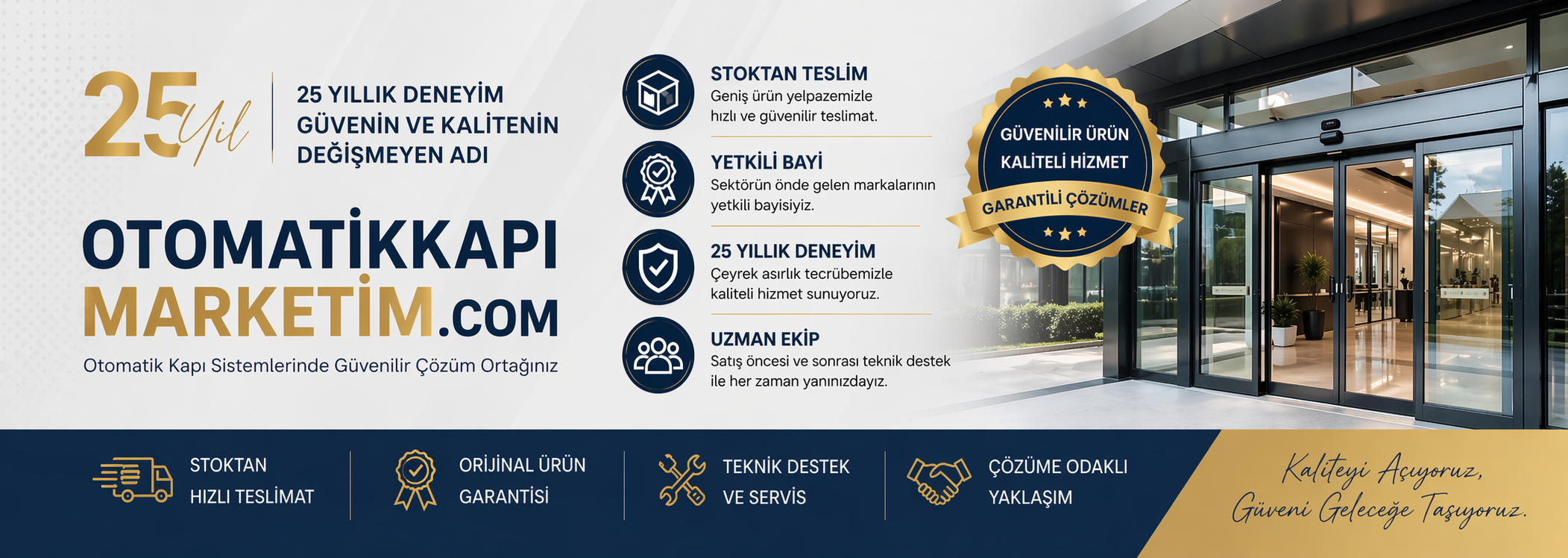 2001 yılında çıktığımız bu yolda, otomatikkapimarketim.com olarak 25 yıllık sektör tecrübemizi dijitalin hızıyla birleştiriyoruz. Giriş kontrol sistemleri ve otomatik kapı çözümlerinde çeyrek asırlık bir bilgi birikimine sahip olan firmamız, müşteri memnuniyetini odağına alarak güvenilirliğin adresi olmuştur. Sektördeki değişimleri yakından takip eden uzman kadromuzla, sadece bir satış platformu değil, aynı zamanda projelerinize değer katan köklü bir çözüm ortağı olarak hizmet vermeye devam ediyoruz.